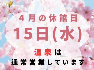 宿泊・宴会ご利用で無料、日帰り湯治(立寄り湯)にもご利用いただけます